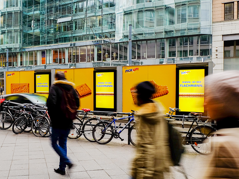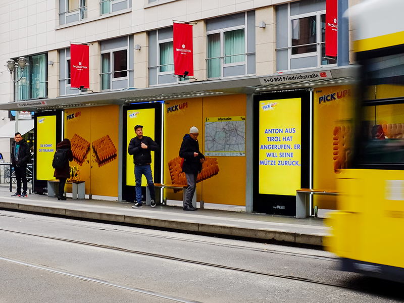 Digitales Wartehallenbranding mit interaktiver Bespielung der Screens. Die witzigen Sprüche auf den DCLP-Flächen wurden in Echtzeit individuell per Remote-Steuerung auf die jeweilige Situation angepasst.