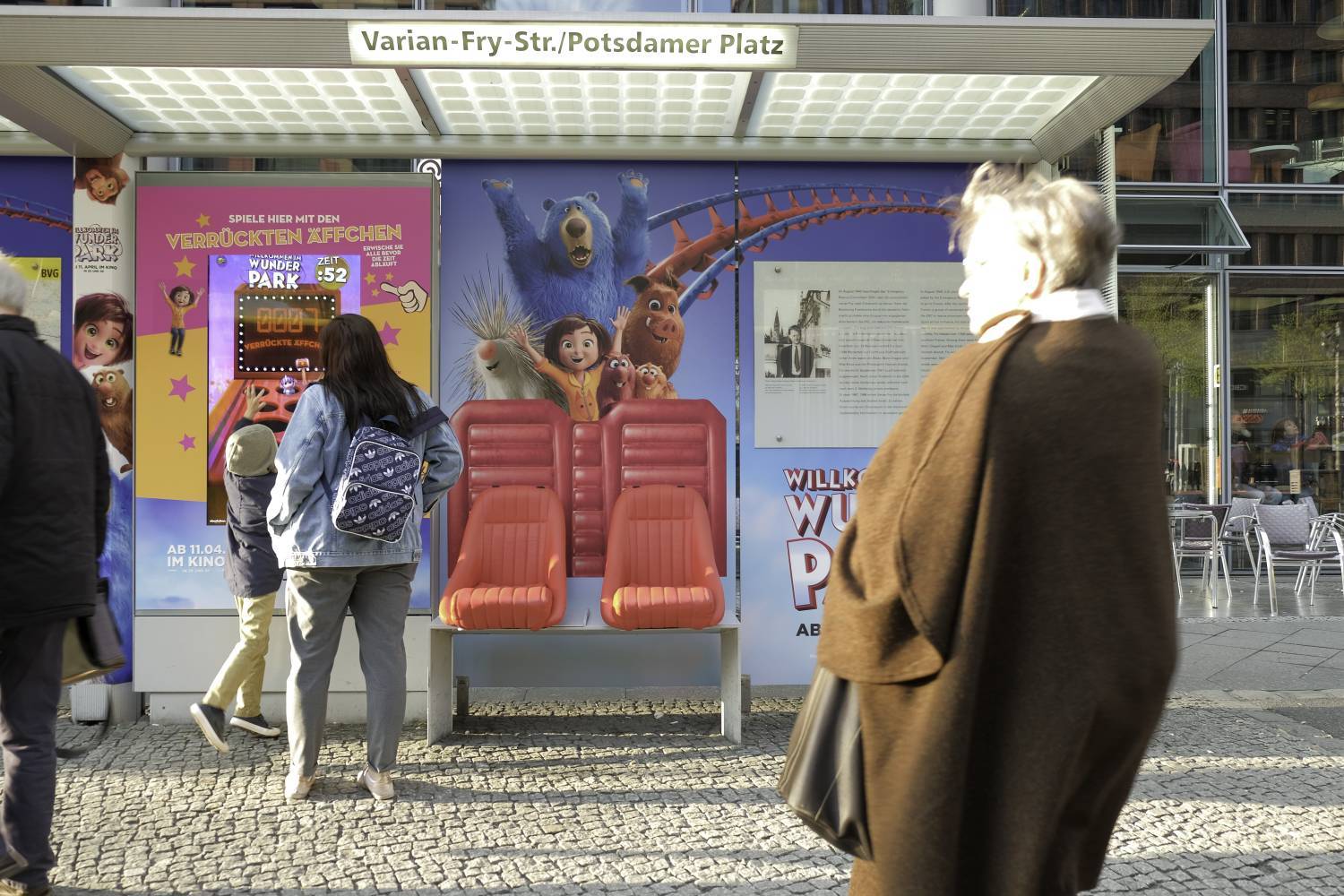 Für jede Menge Spaß sorgte die umgestaltete Wartehalle am Potsdamer Platz. Die ursprünglichen Sitze wurden gegen Achterbahnsitze getauscht und die Rückwand mit einem Branding ausgestattet. Highlight war ein interaktives Spiel, in dem Kids via Touchscreen auf Highscore-Jagd gehen konnten.