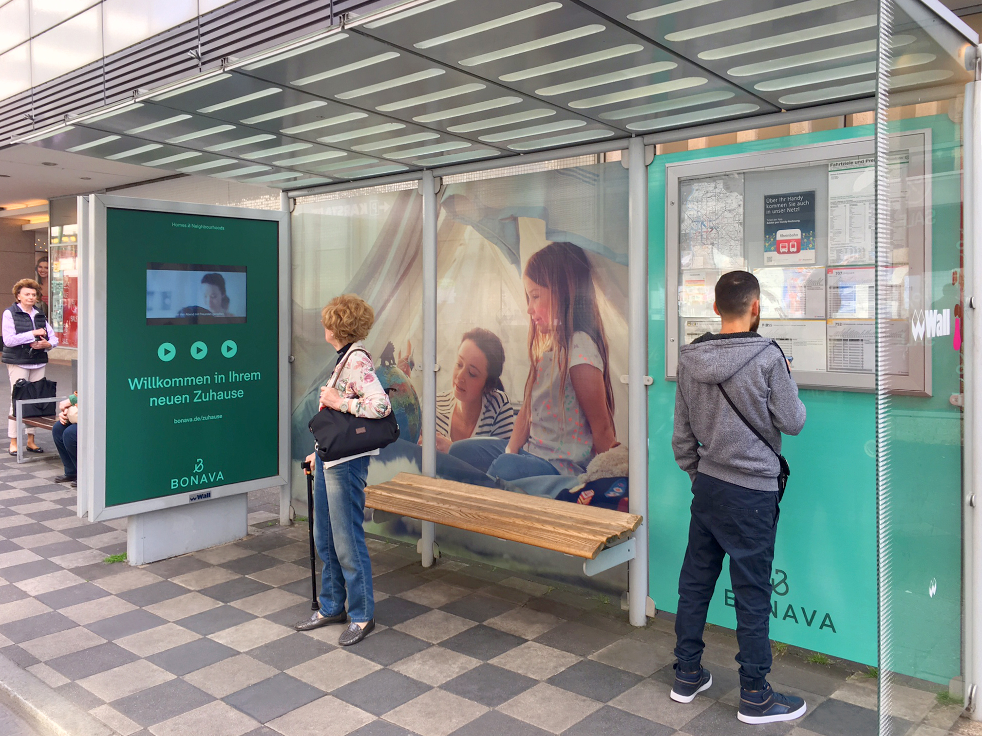 Passanten und Fahrgäste konnten sich in Berlin und Düsseldorf an interaktiven Touchscreens über das Angebot der Bonava informieren