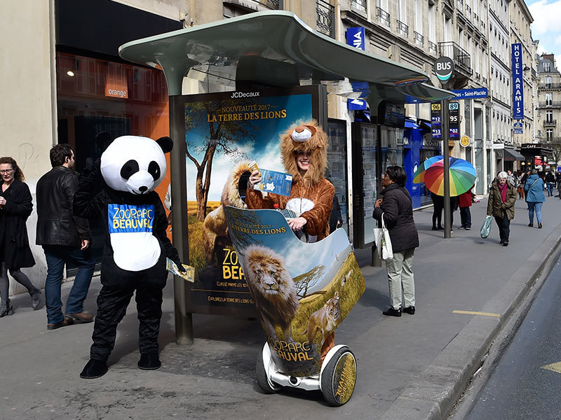 Selfie Alarm bei der Innovate Aktion durch den ZooParc de Beauval in Frankreich. Durch ein entkerntes CLP konnte man den Kopf hindurchstecken und ein Selfie erstellen. Flankiert wurde die Aktion mit Promotion Teams.