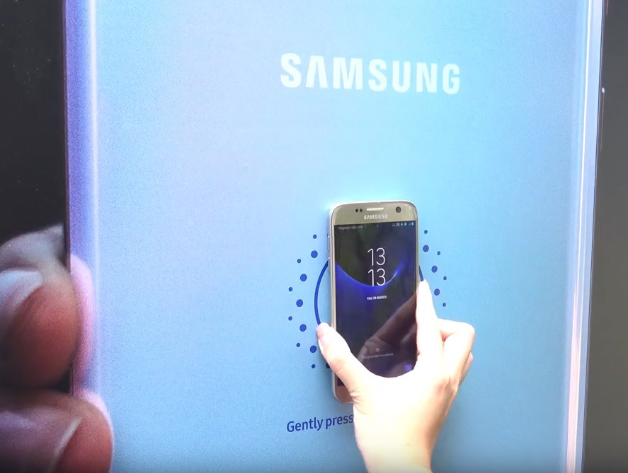 Passanten konnten ihr mobiles Samsung Endgerät kabellos durch einfaches Auflegen an der Werbevitrine aufladen.