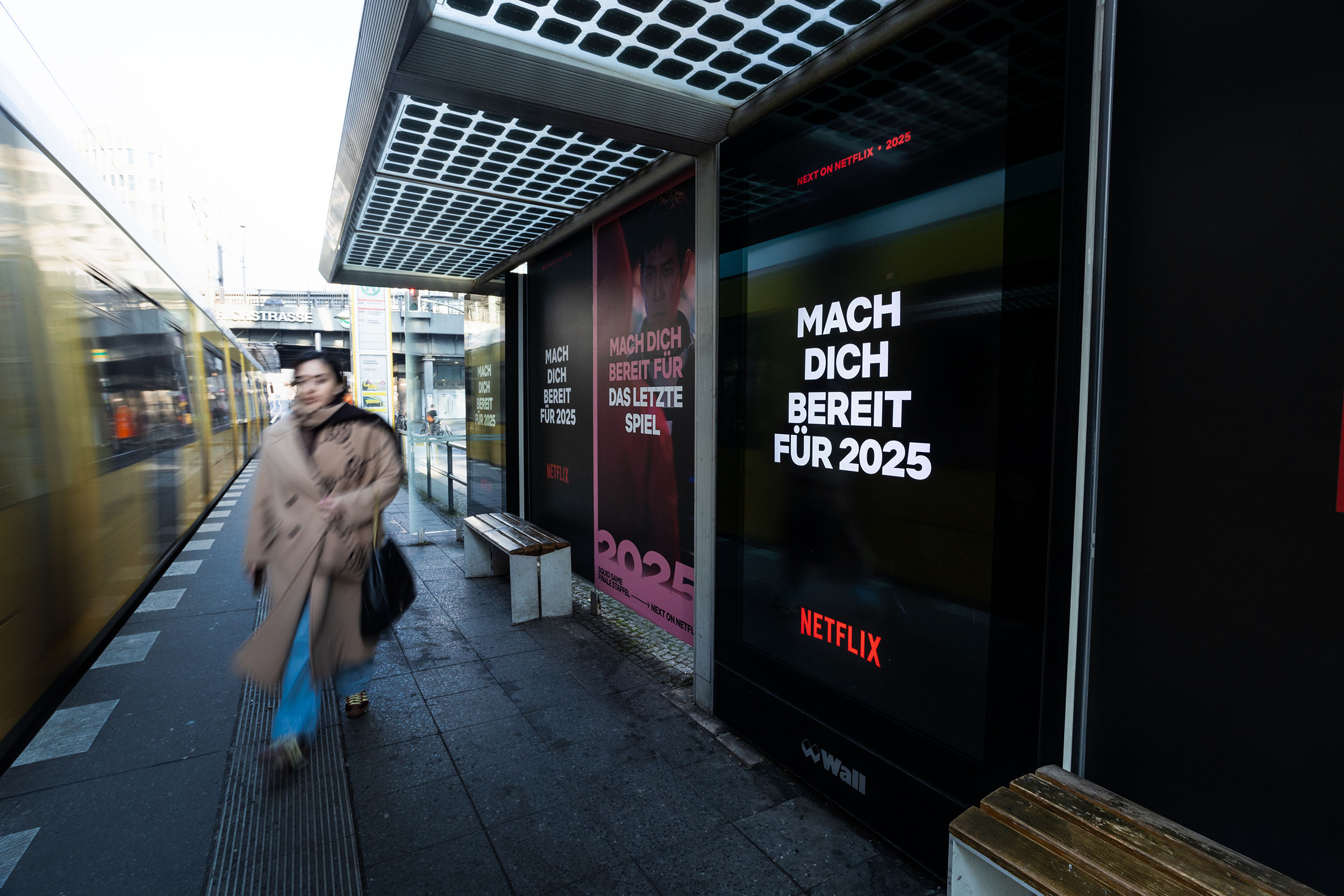 Next on Netflix: Mit einem spektakulären Takeover verwandelte sich die Digitale Branding Area rund um die Berliner Friedrichstraße inklusive Transportmedien in eine eindrucksvolle Vorschau auf die kommenden Netflix-Highlights 2025.