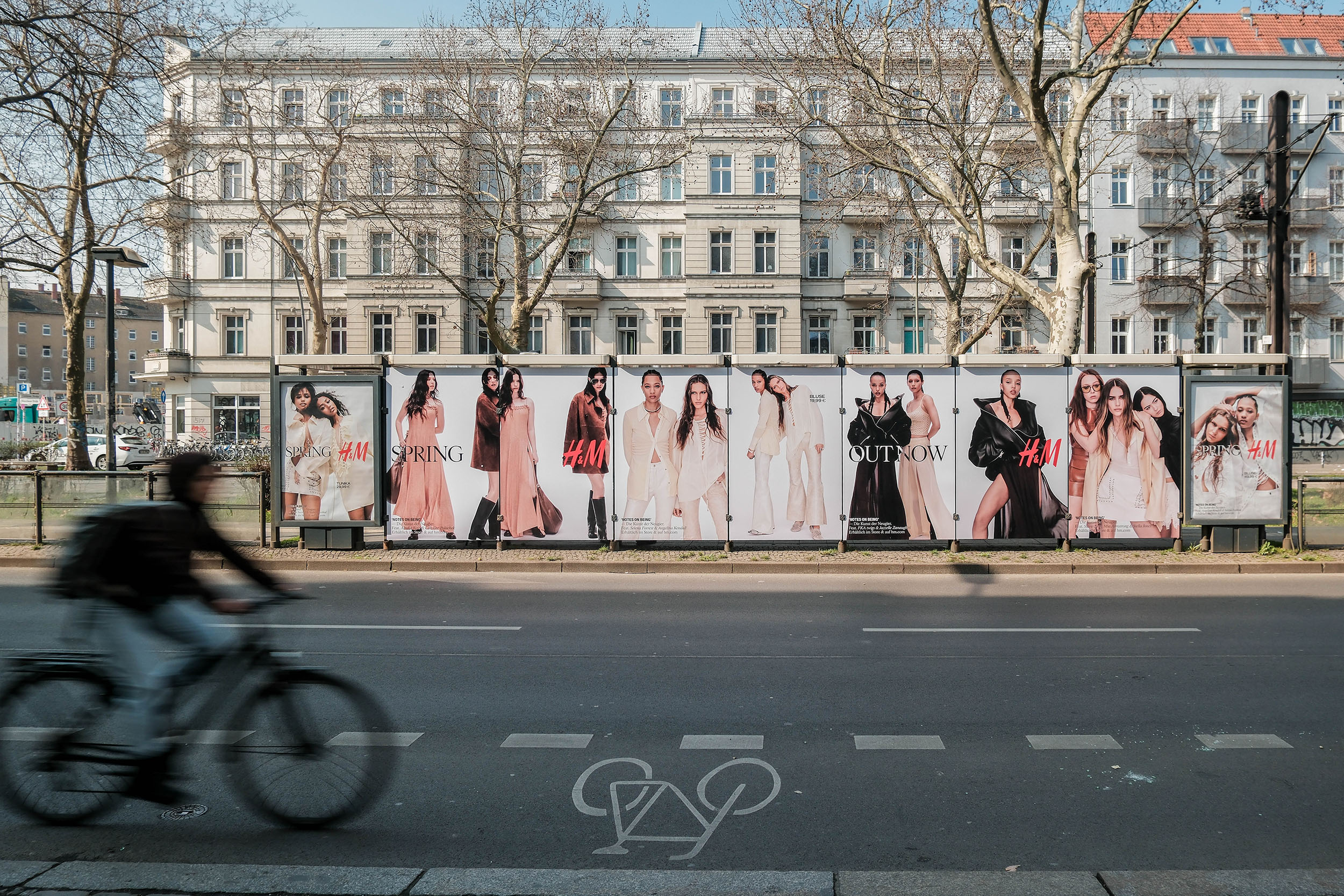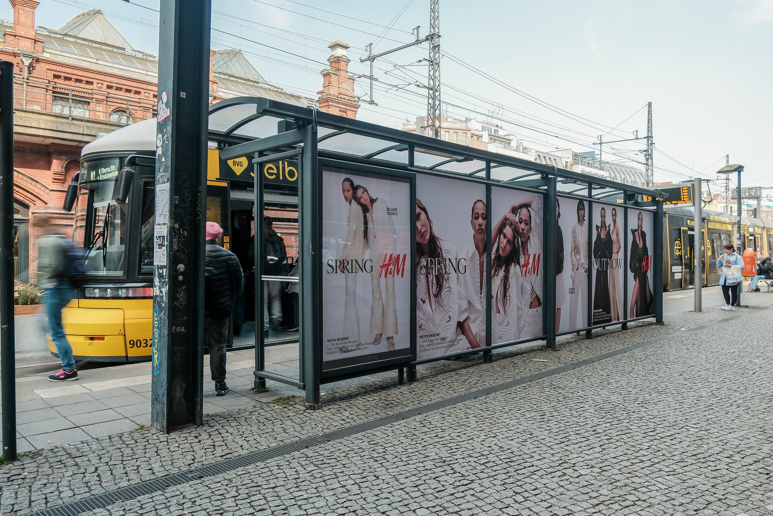 Ein auffälliges Wartehallenbranding an vier Berliner Wartehallen gibt einen Ausblick auf die Frühjahrskollektion 2025 von H&M.