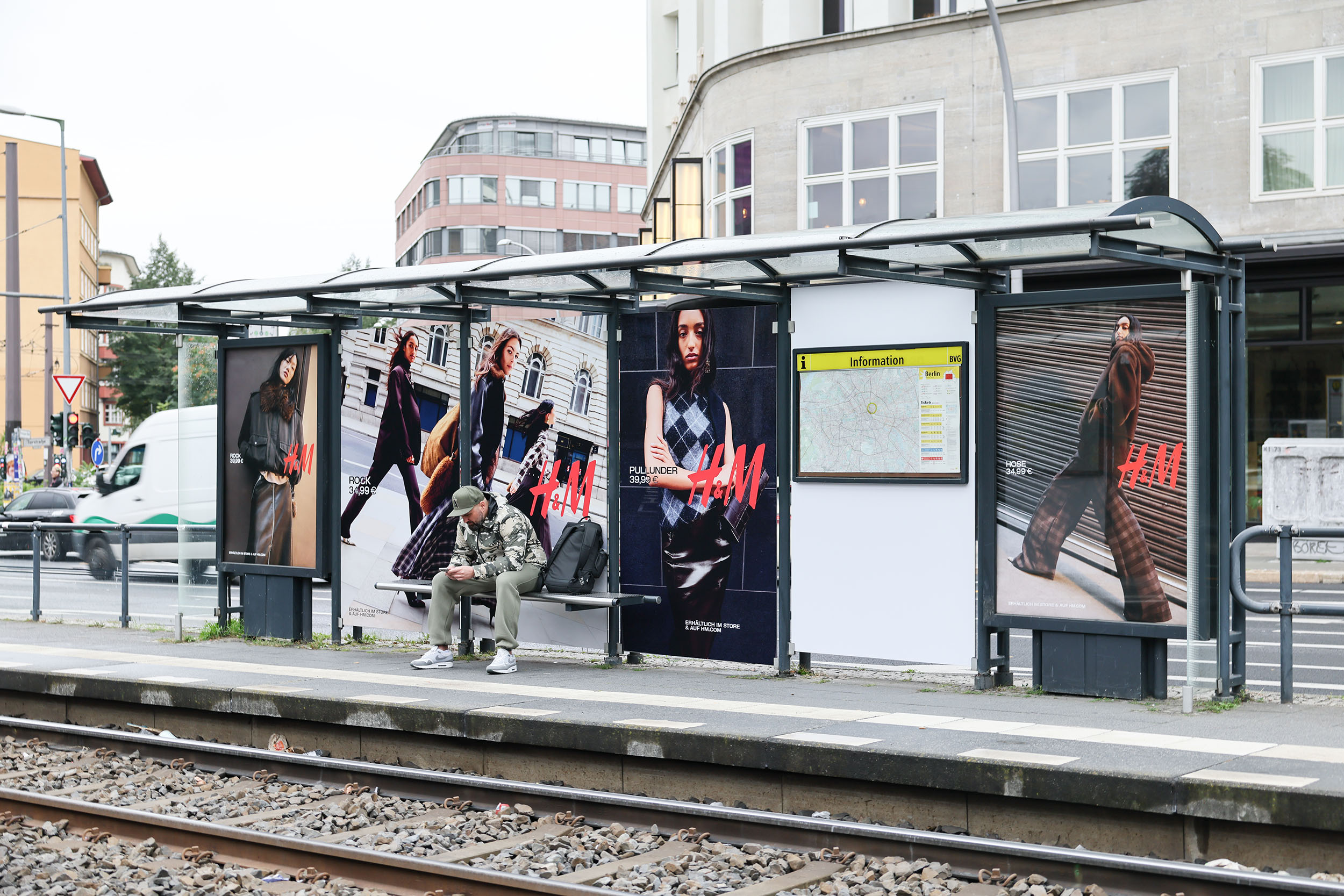 Ein auffälliges Wartehallenbranding an vier Berliner Wartehallen gibt einen Ausblick auf die Herbstkollektion 2025.