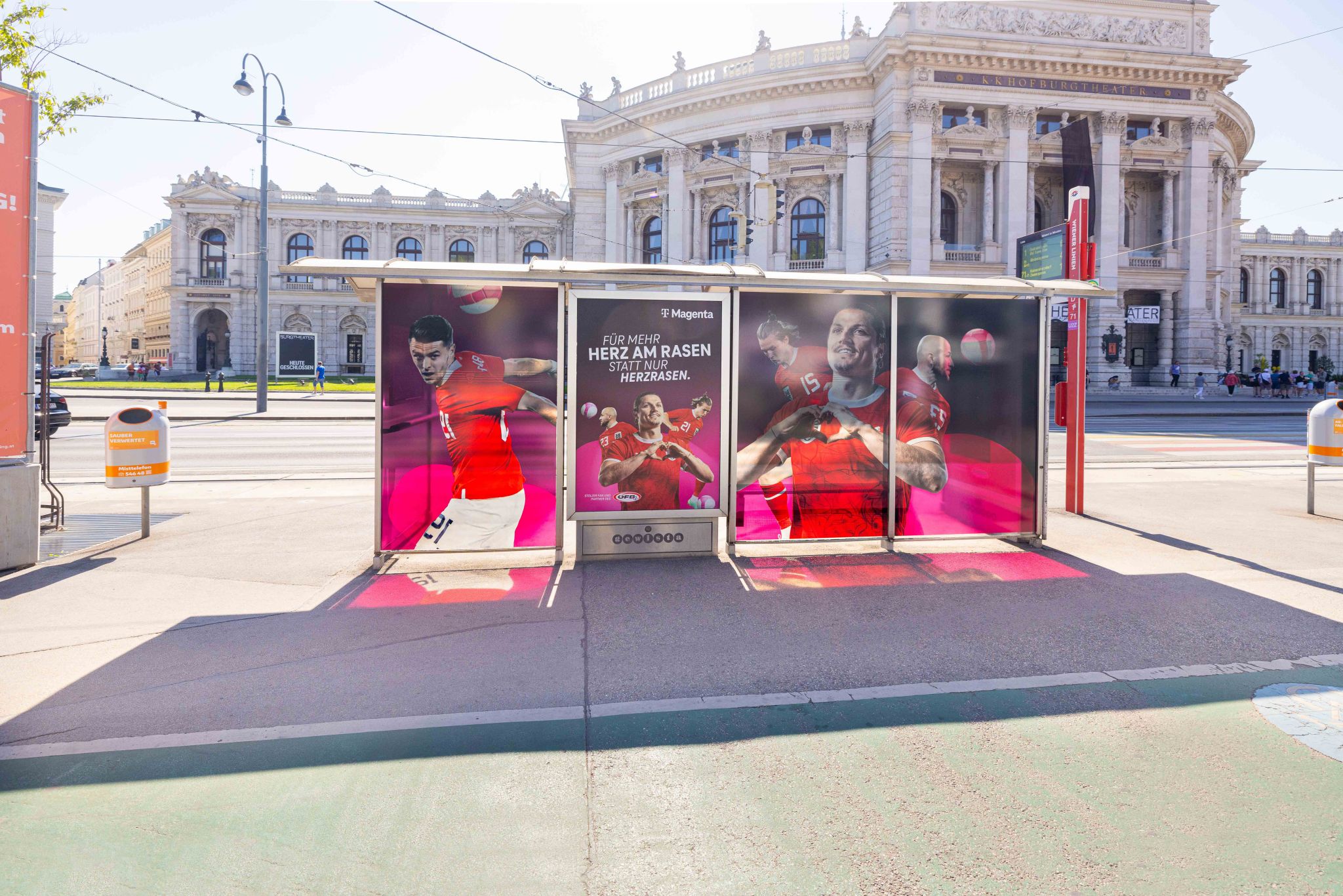 In Wien und Linz gab es passend zur EM ein ganz besonderes Wartehallenbranding. Passanten konnten ihr Team lautstark unterstützen und am Städte-Wettbewerb teilnehmen. Sie besuchten die Wartehalle, feuerten kräftig an und sahen die Lautstärke direkt am City Light – jede Stimme zählte.